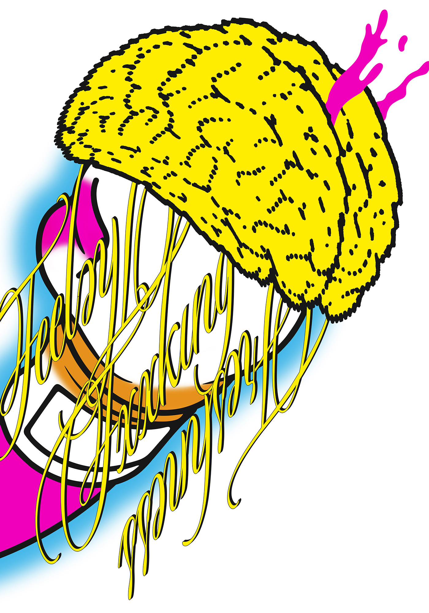 Poster for an coffee-related art exhibition with a theme “Feel the Fxxking Freshness” in a café. Coffee gives us a punch on the brain every morning.